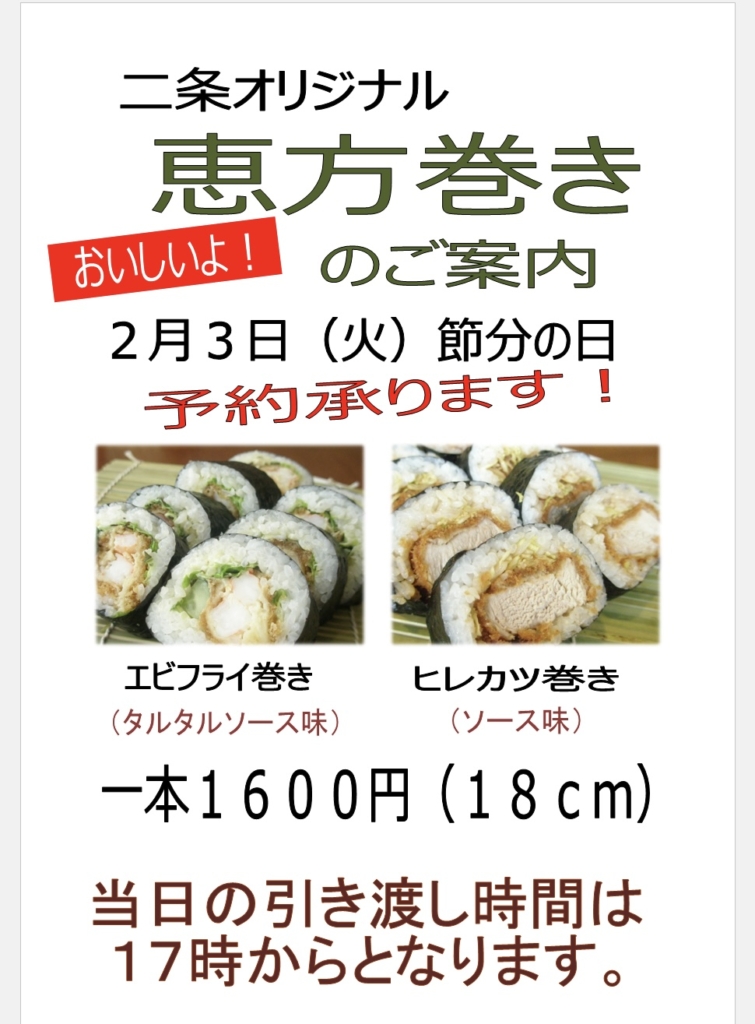 二条は定休日ですが今年も恵方巻きを作ります❗️