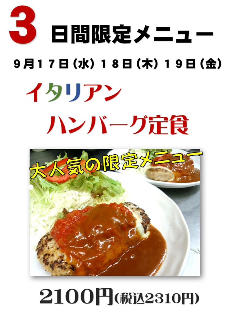 今回は4年ぶりの『イタリアンハンバーグ』✨