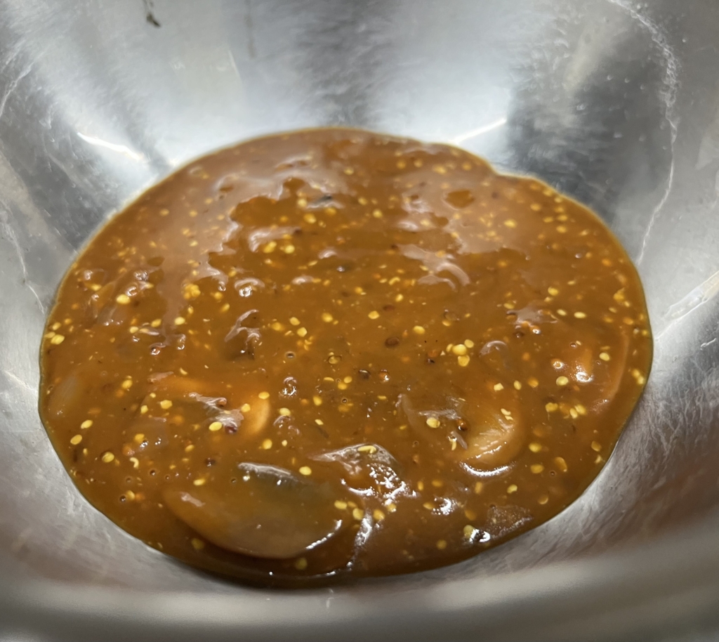 今回のソースはお出しする直前に混ぜる粒マスタードが隠し味になってます😋
