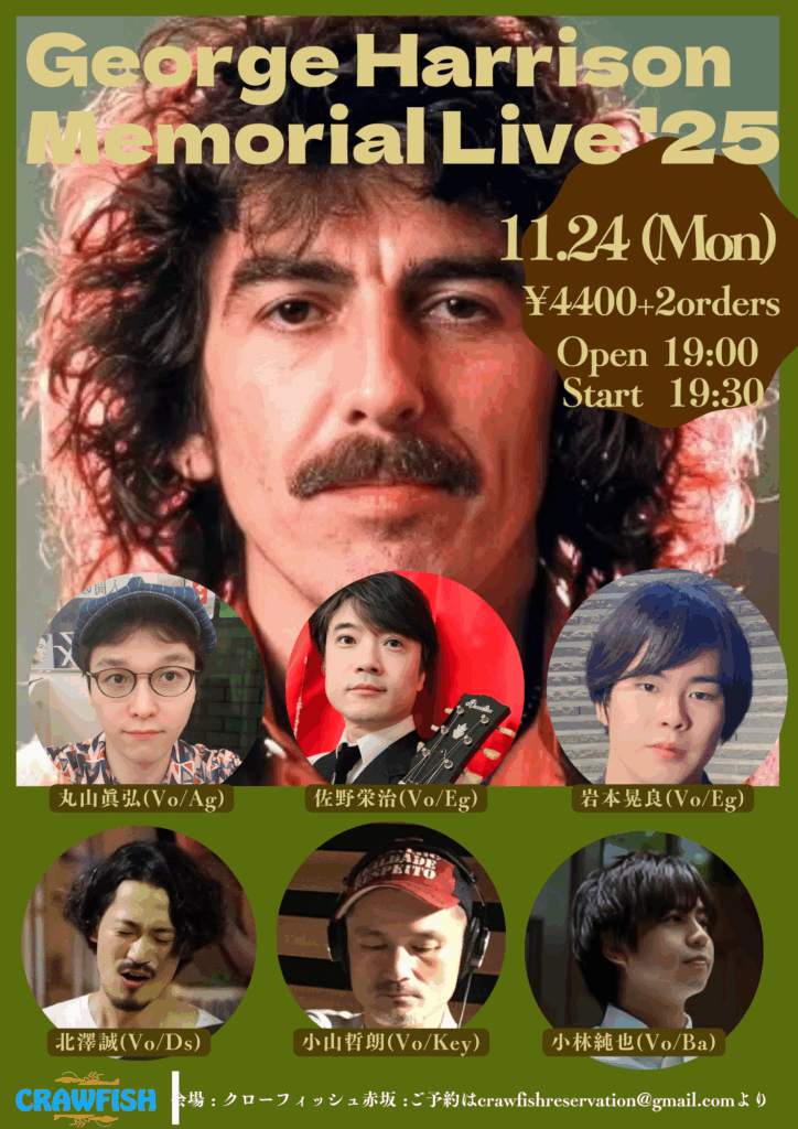 この日はジョージ・ハリスンの曲を演奏するというので数日前からすごく楽しみにしてました♪
